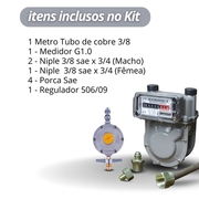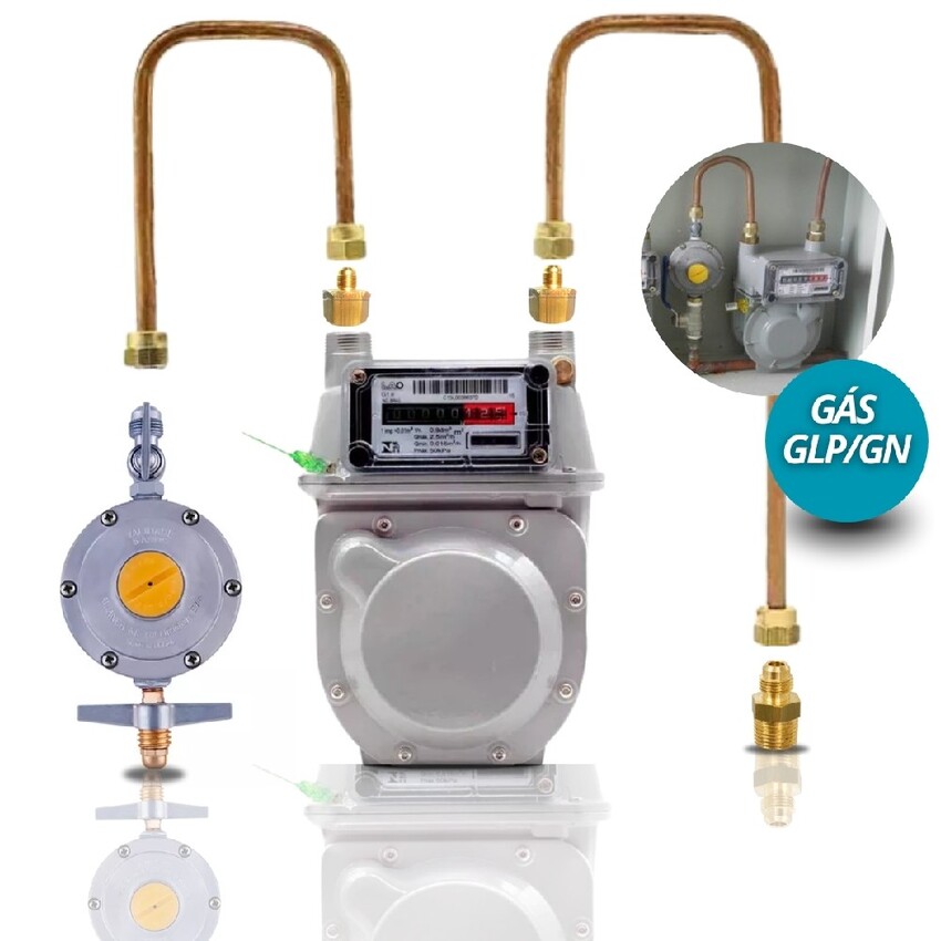 Início › 001 - MAC FRIO › INSTALACAO DE GAS GLP E GV › REGULADORES › Kit medidor gás G-1 LAO com Regulador Aliança 506/09 2kg/h (33097)